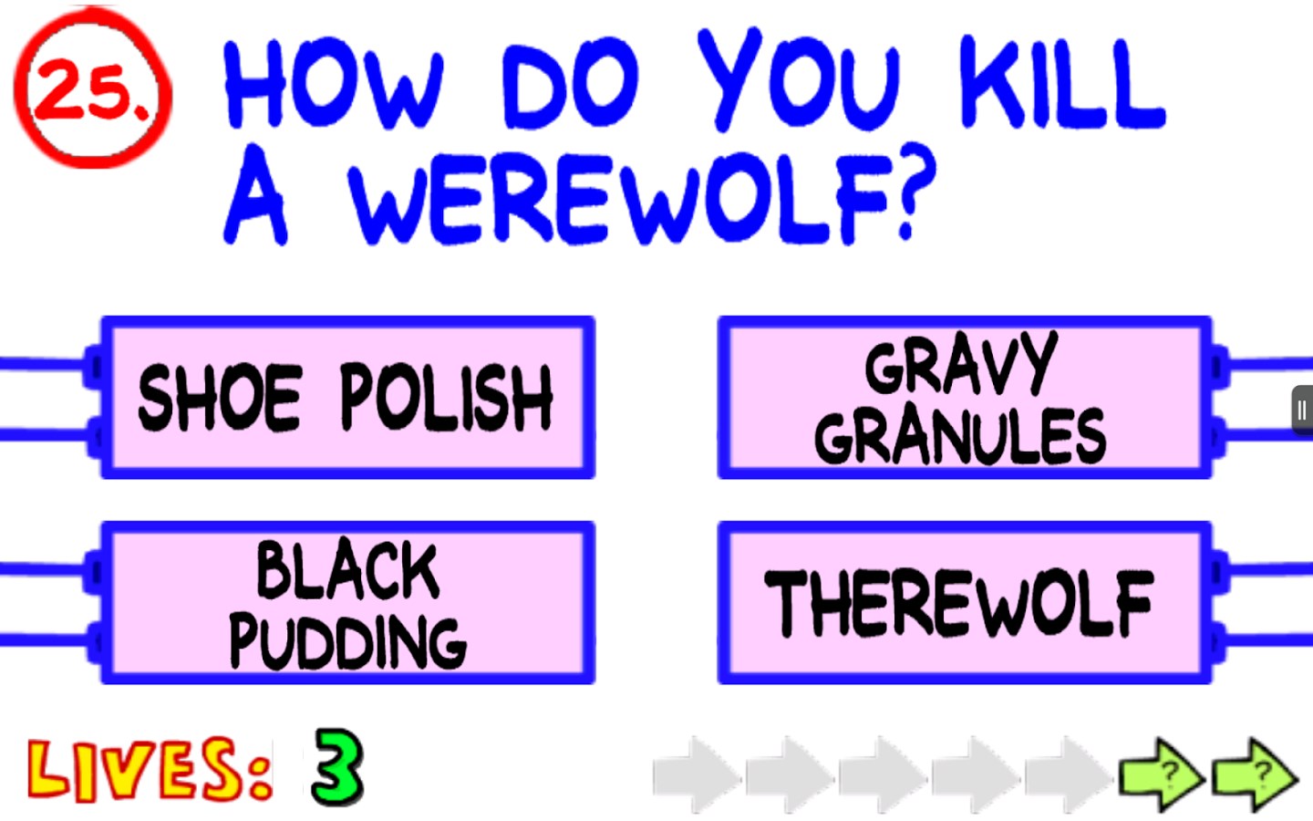 One of the most aggravating games ever created. Out of the four answers only one answer is right. Splapp-me-do 42 73833 votes.